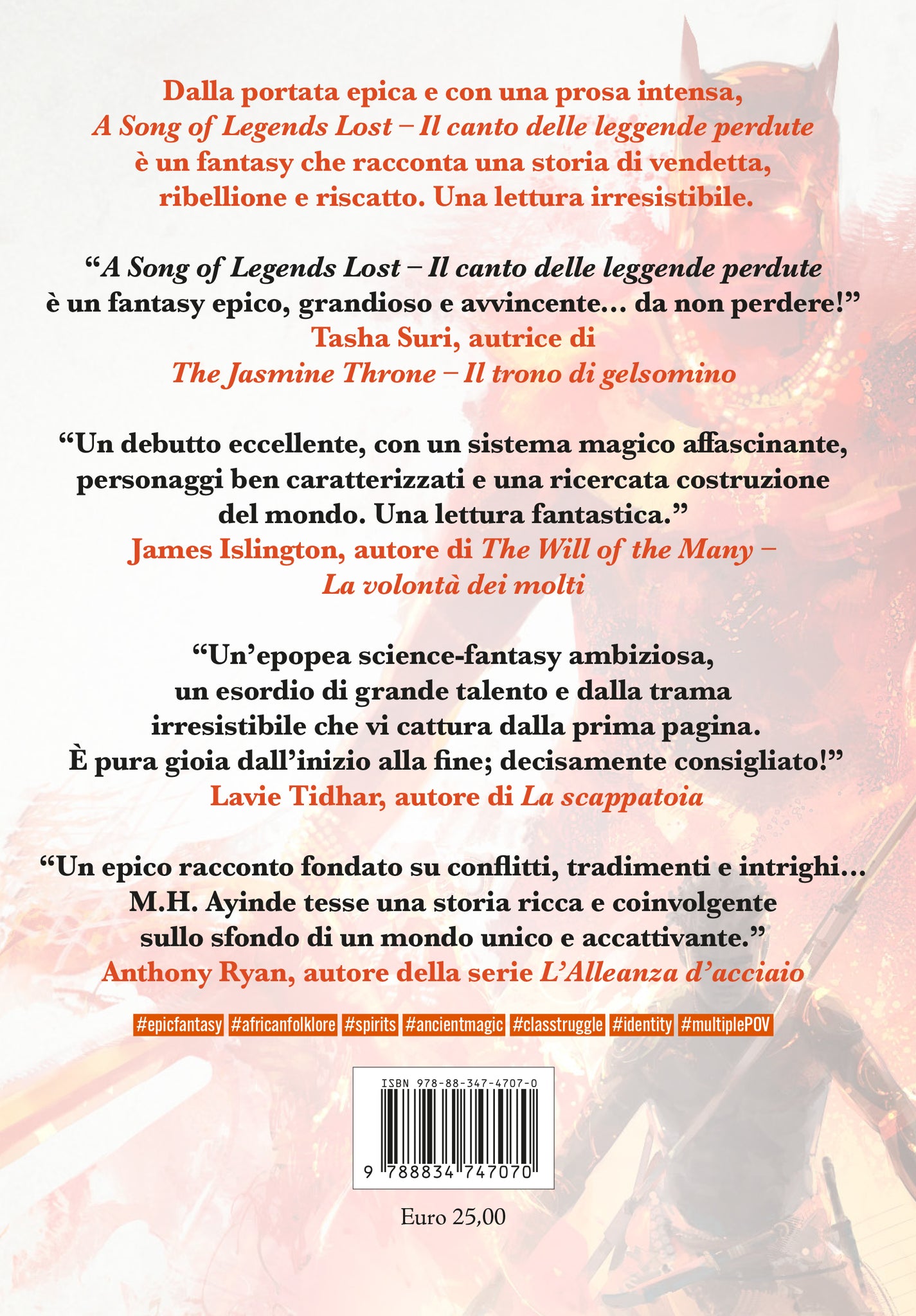 A Song of Legends Lost – Il canto delle leggende perdute è un fantasy epico, grandioso e avvincente... da non perdere!” Tasha Suri, autrice di The Jasmine Throne – Il trono di gelsomino